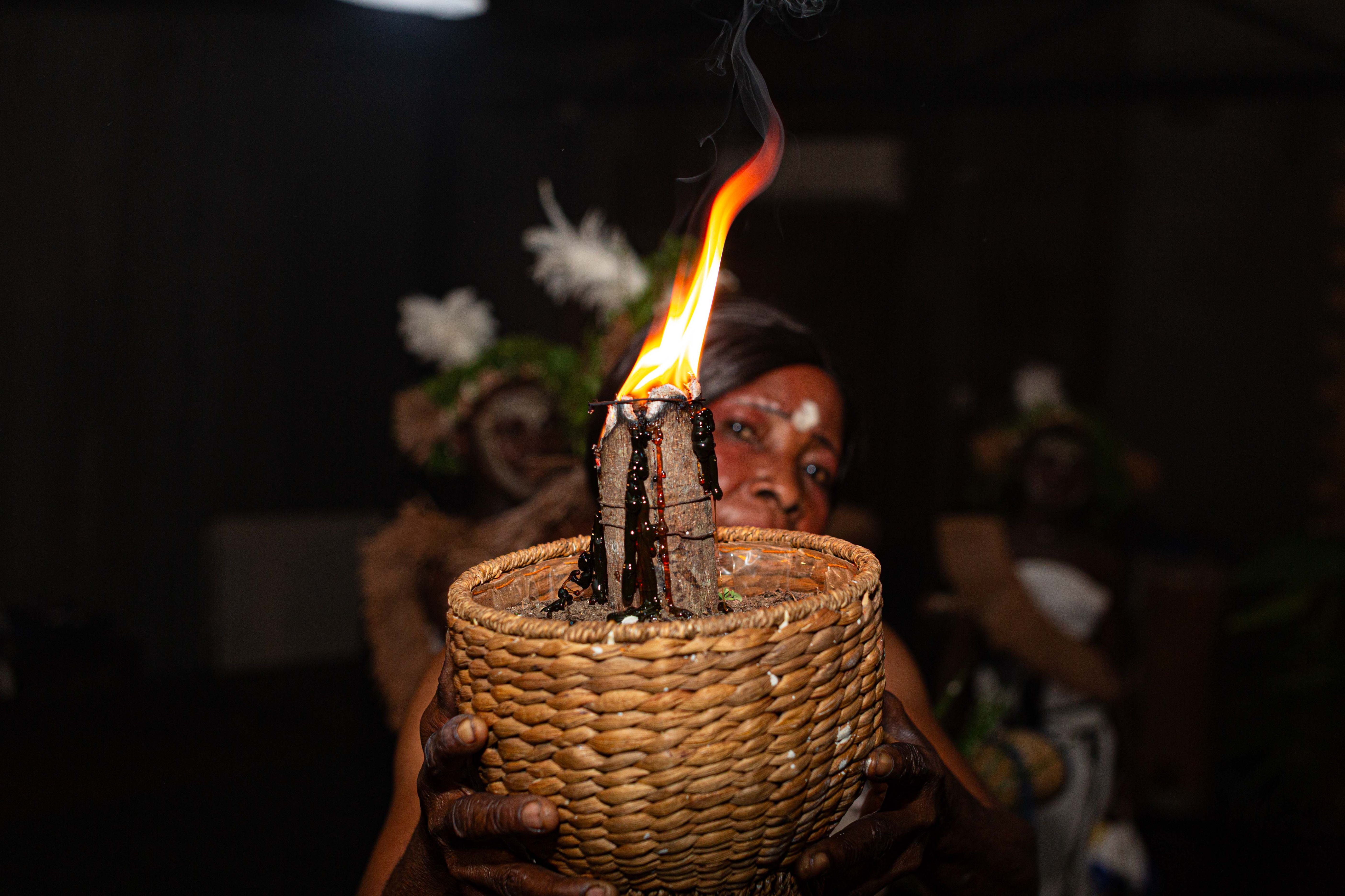Liderado por Pilar Ubenga Matomba, el grupo de mayengü de Bomudi conserva una de las expresiones más antiguas del ritual curativo con este nombre. Esta danza, acompañada de tambores y símbolos tradicionales, se transmite de generación en generación como una práctica que celebra la sanación, la comunidad y la continuidad cultural ndowé.